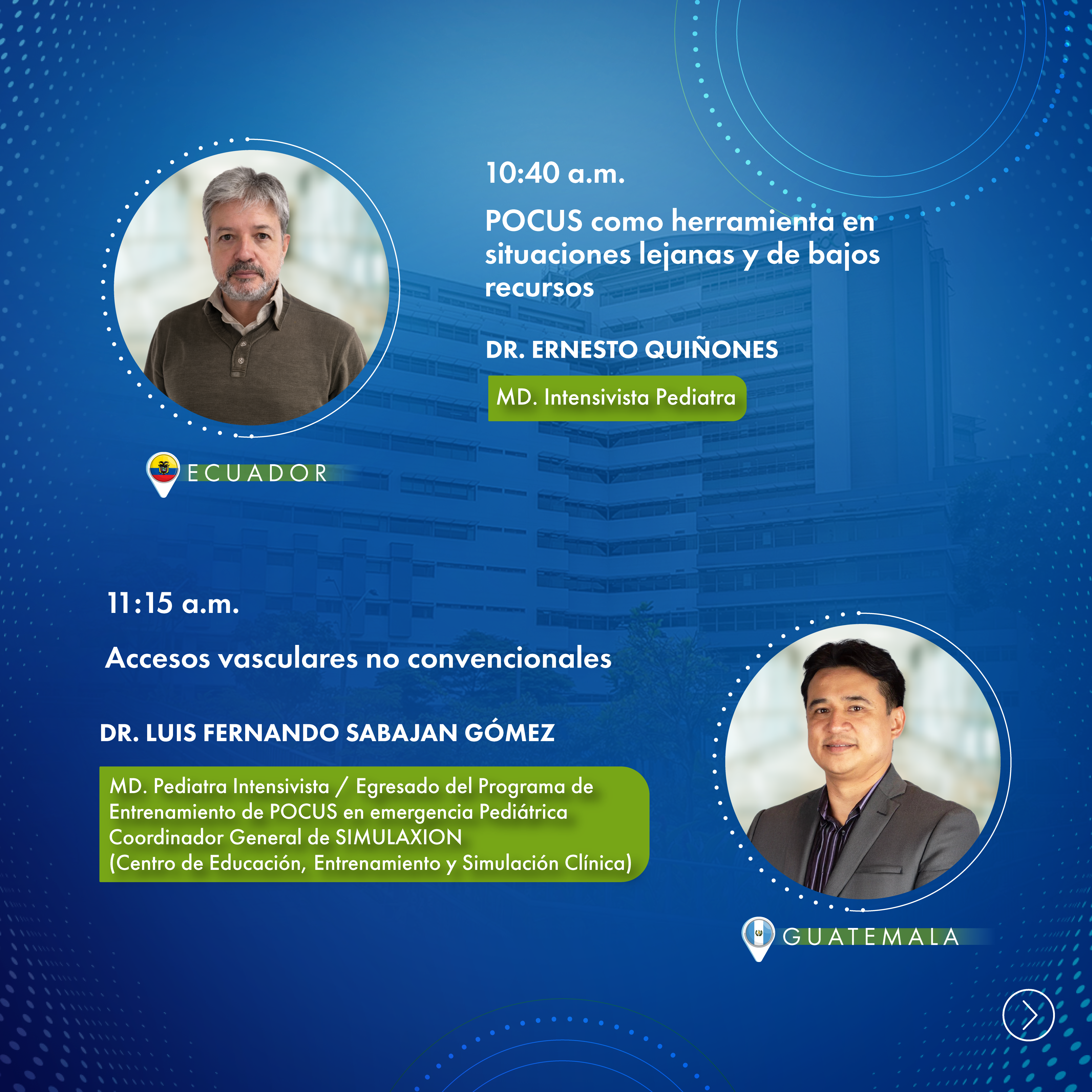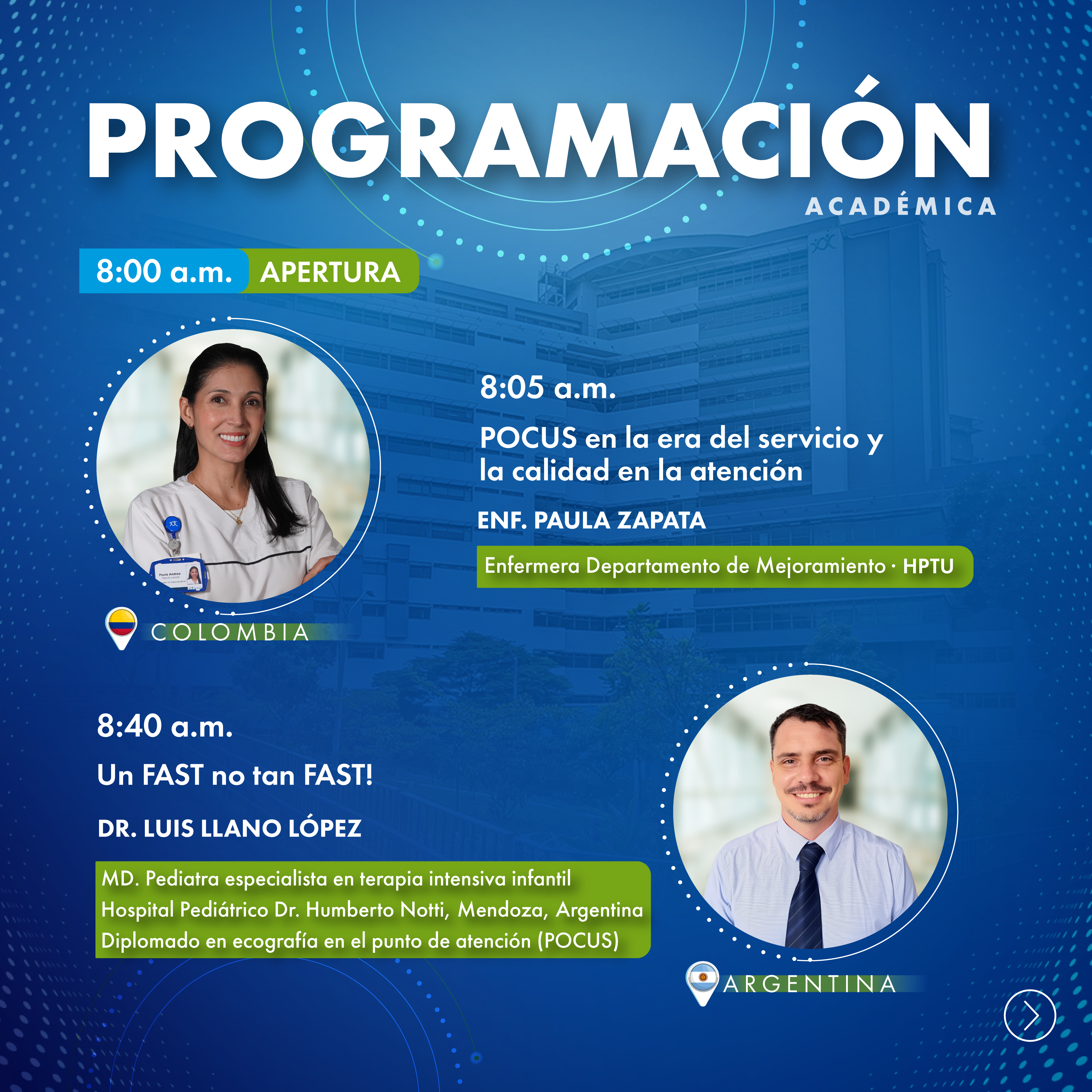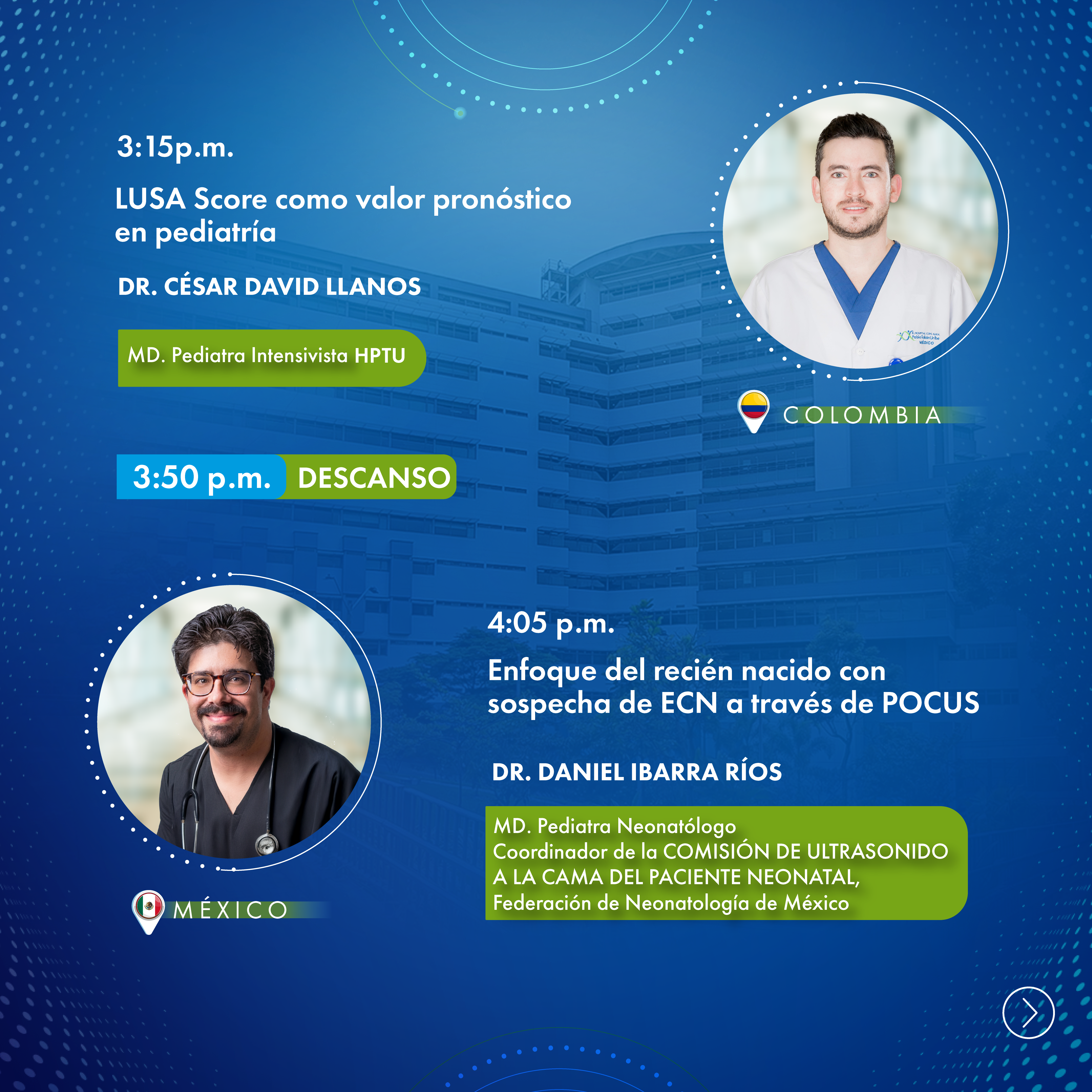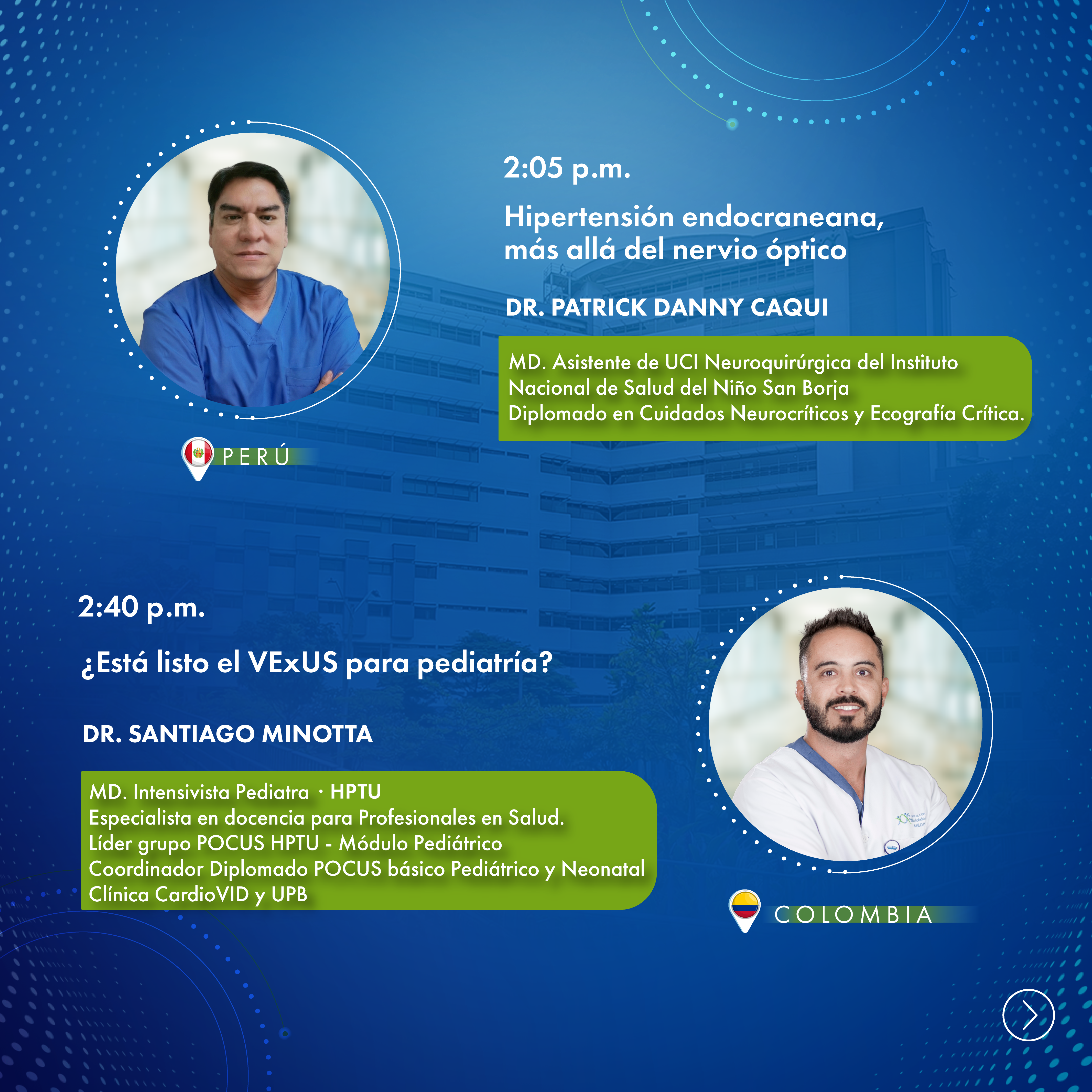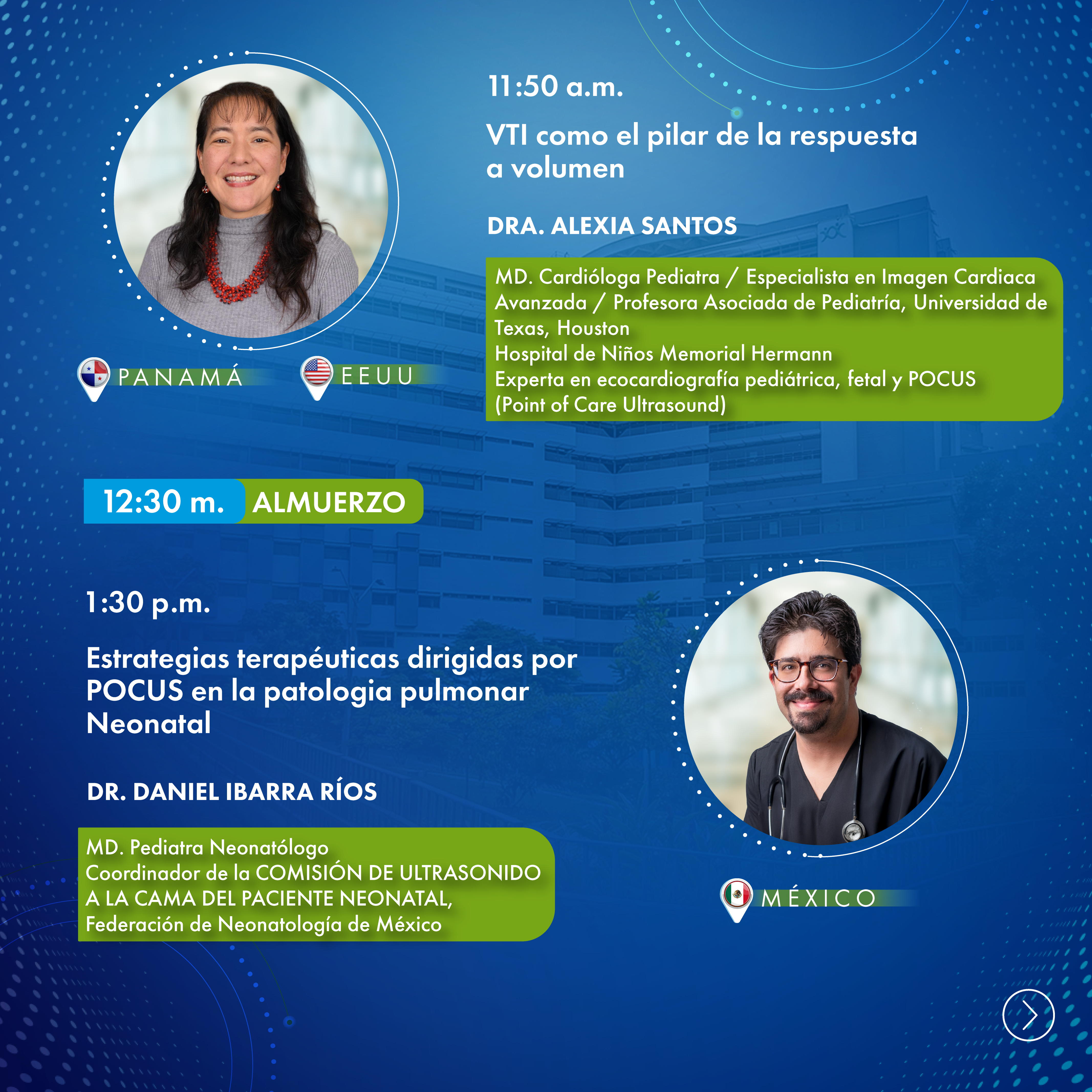 Un espacio académico orientado a la actualización en el uso del ultrasonido a la cabecera del paciente (POCUS) en pediatría y neonatología, donde se abordarán su aplicación en escenarios críticos como reanimación, evaluación de la vía aérea, hemodinamia, patología pulmonar y neuromonitoreo. A través de la experiencia de expertos internacionales, se explorarán herramientas diagnósticas y estrategias terapéuticas que fortalecen la toma de decisiones clínicas en distintos contextos asistenciales, incluyendo entornos de alta complejidad y de recursos limitados.