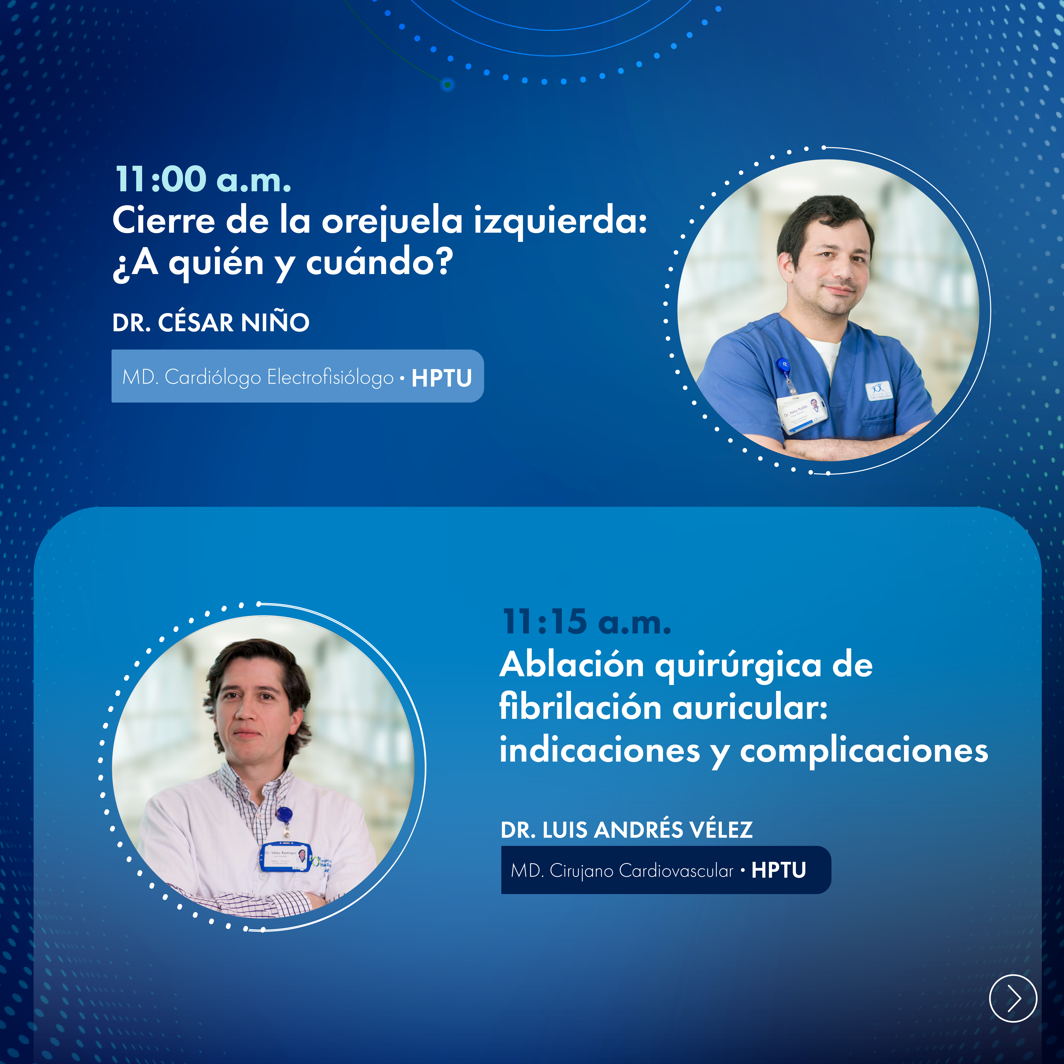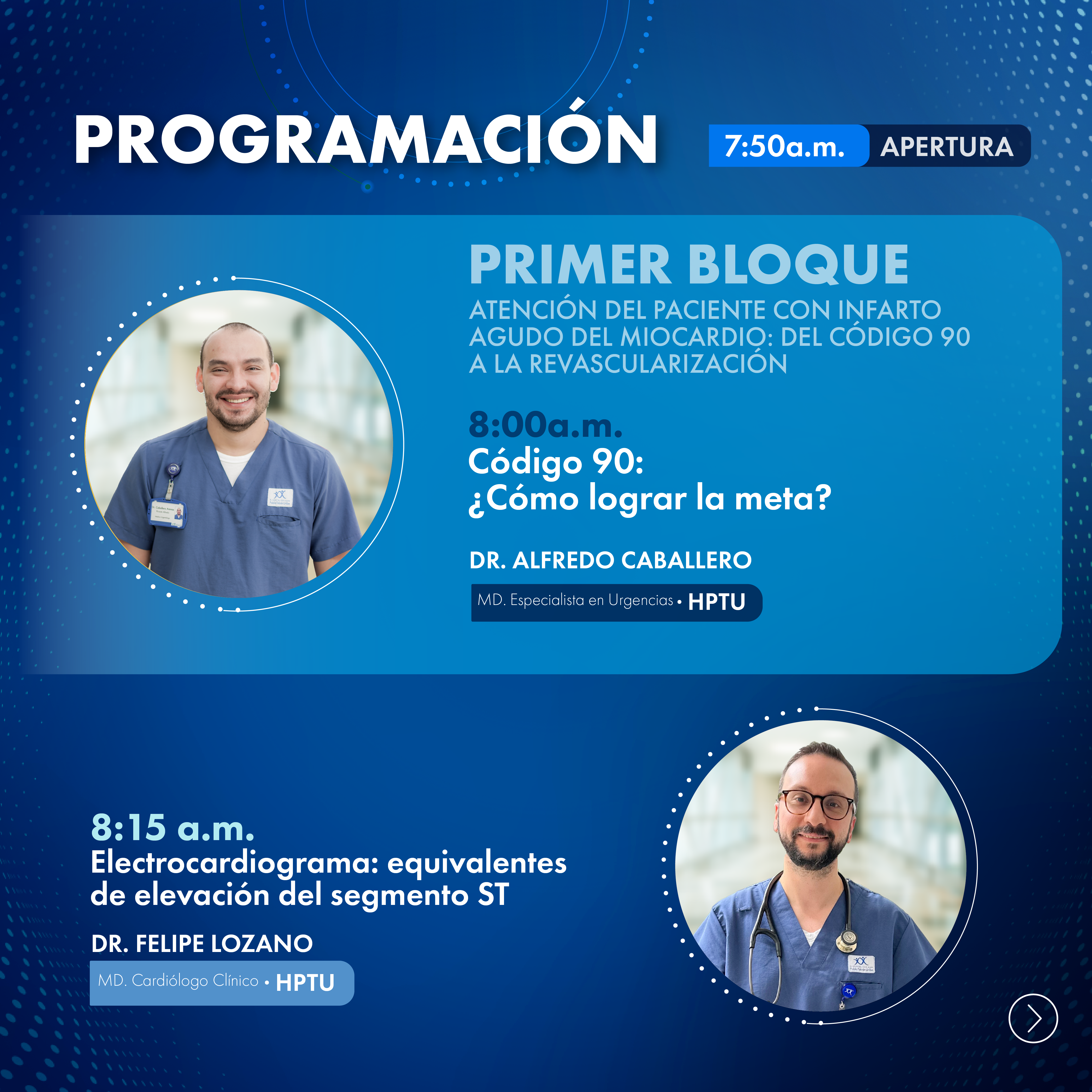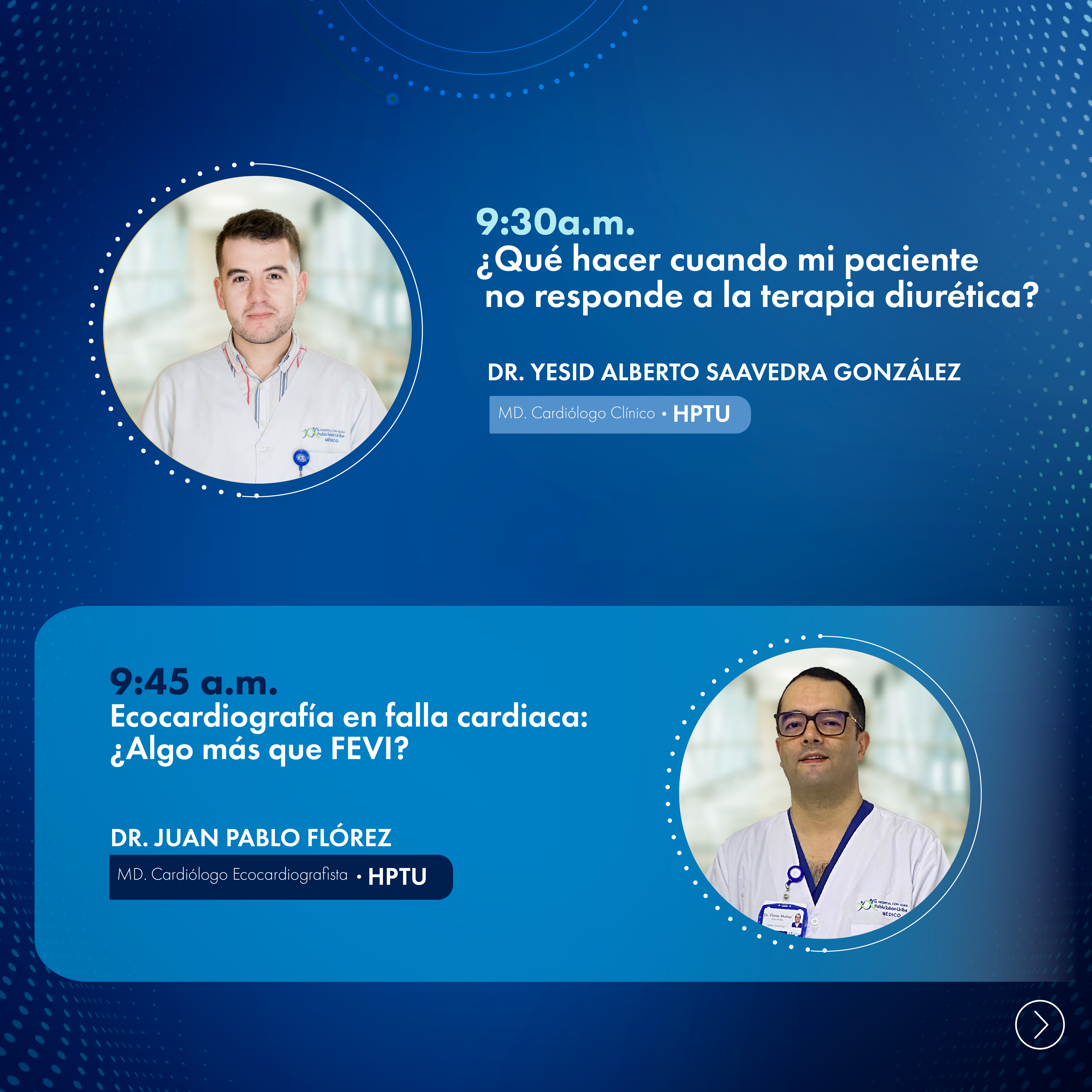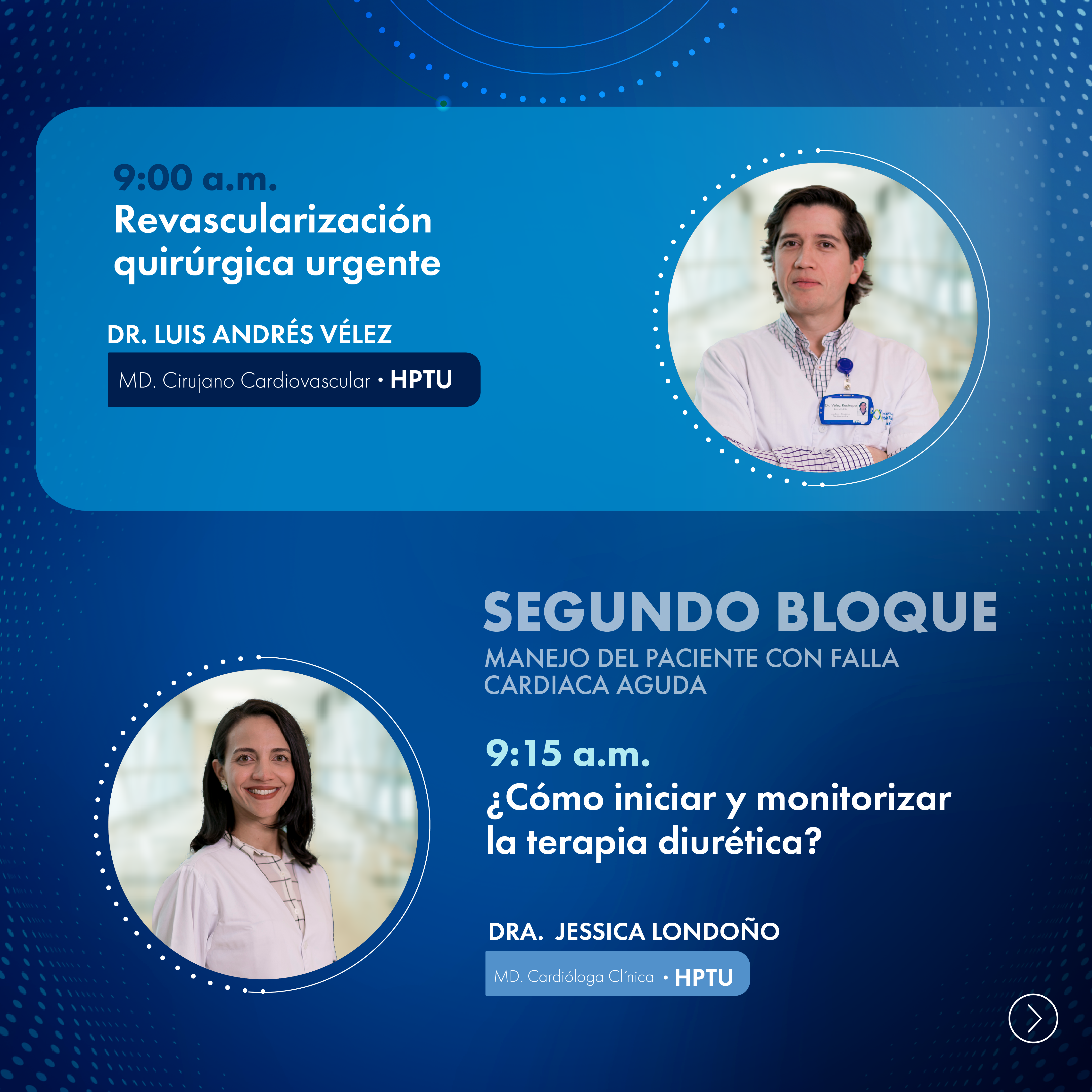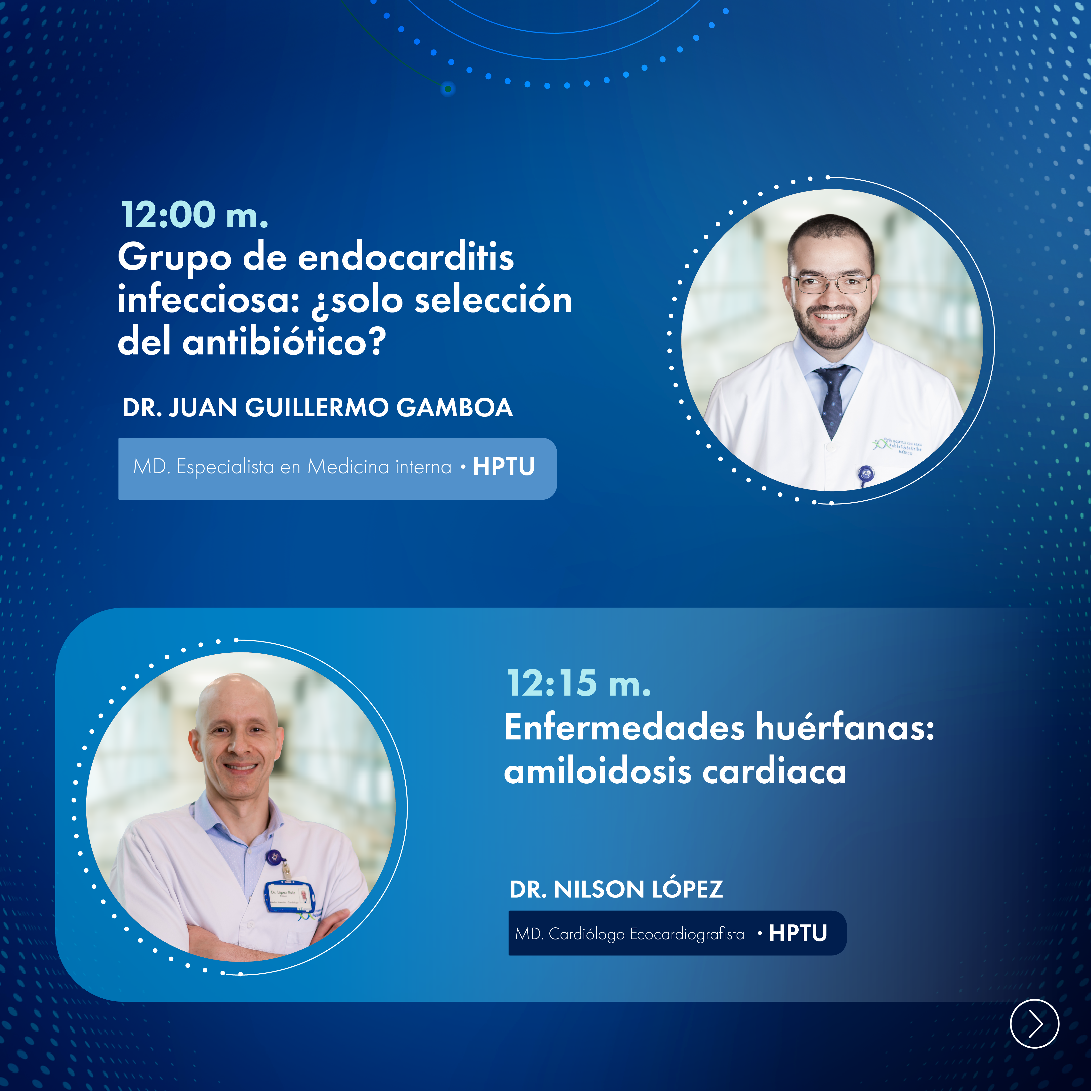 Un espacio académico para compartir la experiencia y el abordaje interdisciplinario en cardiología y cirugía cardiovascular del HPTU, abordando el diagnóstico, tratamiento y seguimiento de pacientes con enfermedades cardiovasculares complejas. A través de casos clínicos y discusión de estrategias terapéuticas, se explorarán temas como el síndrome coronario agudo, la falla cardiaca, las arritmias, el intervencionismo, la cirugía cardiovascular y los retos actuales en áreas como la endocarditis infecciosa, las enfermedades huérfanas y la cardio-oncología.
